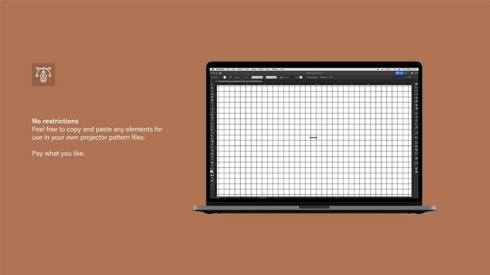 Copy and paste these elements into your projector sewing pattern file to save yourself some artworking time. These elements allow the user to initially calibrate their projector set up (grid) and regularly check it (boxes) while working on your pattern.