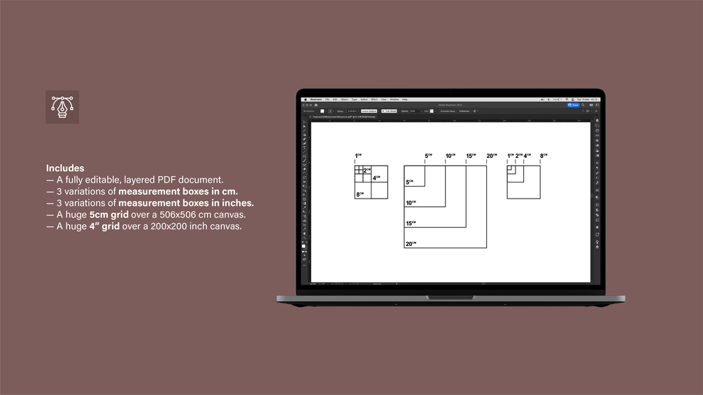 A fully editable layered pdf and ai file with measurement elements